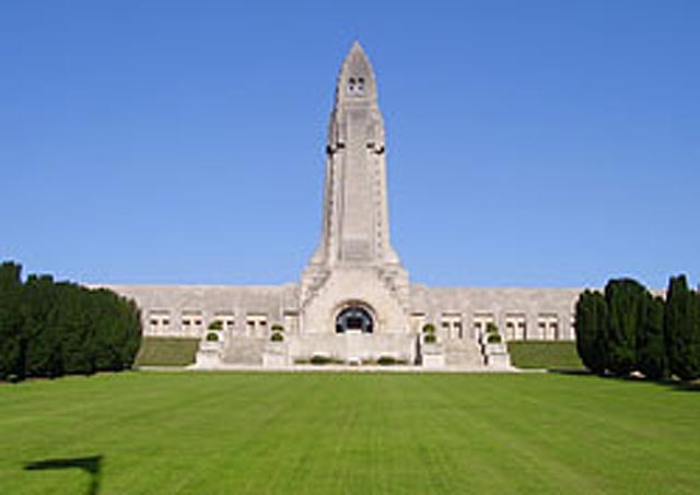 Das Gebeinhaus wurde einige Jahre nach dem Krieg auf Initiative des dort ansässigen Bischofs erbaut. Es enthält über 100000 namenlose Soldatensktette. Jede Nacht leuchtet der Turm über die unvergessenen Schlachtfelder von Verdun.